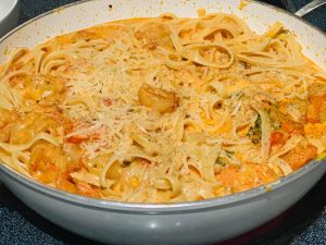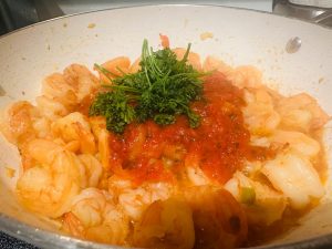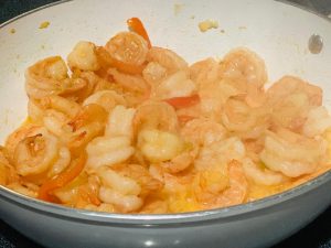 - Add the shrimp and sauté until pink for about 2 minutes per side.
