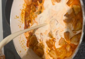 - Pour heavy cream and add Parmesan cheese. This is the time you must stir and taste and add salt if needed.