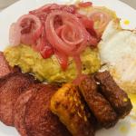 Mangú con los Tres Golpes/Mashed Plantains Recipe